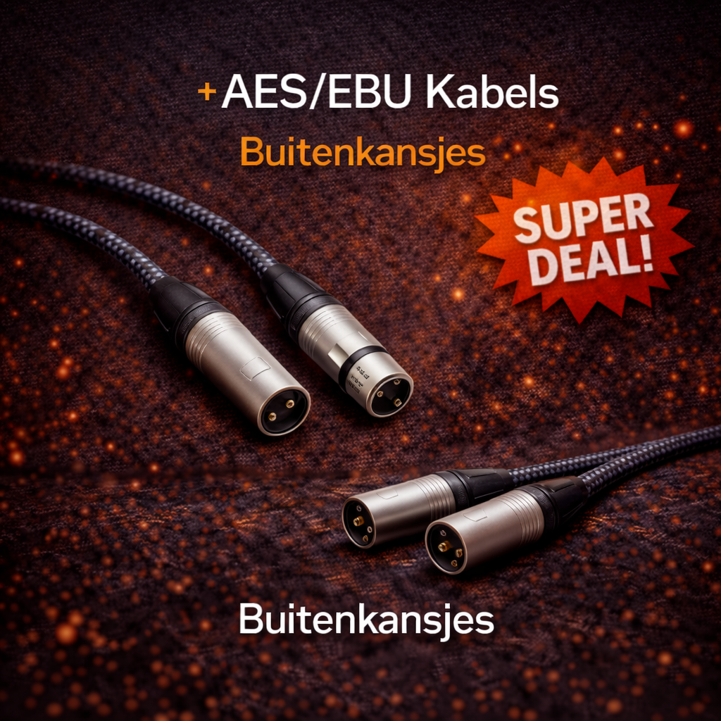 Zoek je een betrouwbare digitale audioverbinding van professionele kwaliteit, maar wil je niet onnodig veel betalen? Dan zijn Buitenkansjes AES/EBU kabels een uitstekende keuze. In deze categorie vind je digitale XLR-kabels die afkomstig zijn uit showroomopstellingen, inruiltrajecten, restpartijen én nieuwe opruimmodellen. Ze zijn technisch gecontroleerd en functioneren volledig naar behoren, maar worden aangeboden tegen een aantrekkelijk prijsvoordeel.