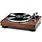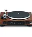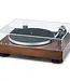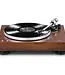 Stijlvolle semi-automatische draaitafel met ingebouwde phono-voorversterker, voorgeïnstalleerd element en klassieke houtafwerking.